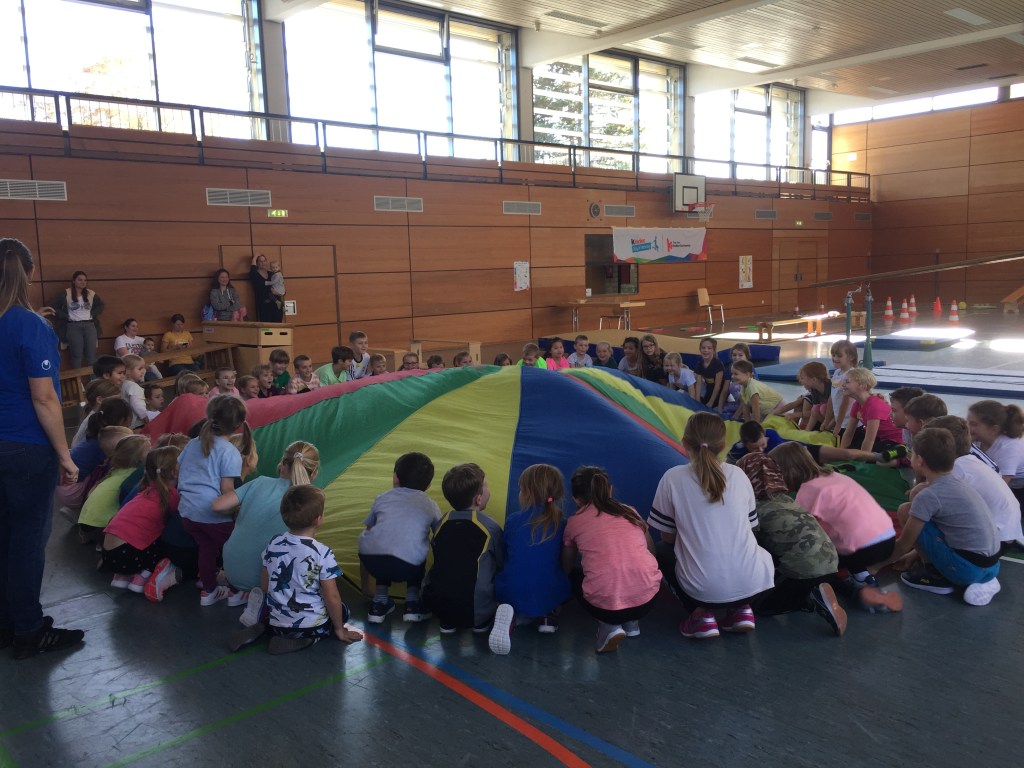 Zur abschließenden Urkundenübergabe und Auflösung der Schätzfrage versammelten sich alle Kinder wieder beim bunten Schwungtuch, das bereits zu Beginn und für eine kleine Pause zum Einsatz kam. Stolz und voller Freude wurden die Urkunden und die gewonnenen Preise eingepackt und dann war der Nachmittag auch schon zu Ende. Einig waren sich alle, das es so etwas öfter geben sollte…