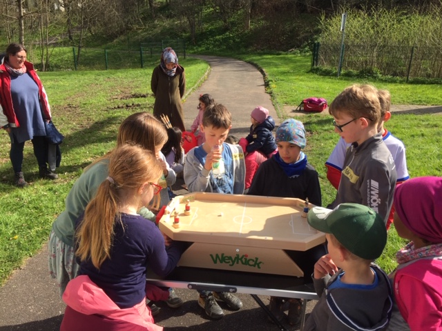 Bei wechselhaftem Aprilwetter hat das Spielmobil am Lombacher Spielplatz Halt gemacht und erfreut festgestellt, das die Kinder sich vom Regen nicht abhalten ließen, viel Spaß zu haben. Neben Fußball und WeyKick verbrachten die Kinder viel Zeit mit dem Bauen und Bepflanzen von Gemüsekästen, dem Bau eines riesengroßen Turms aus Holzklötzen und dem Faul-Ei-Spielen.