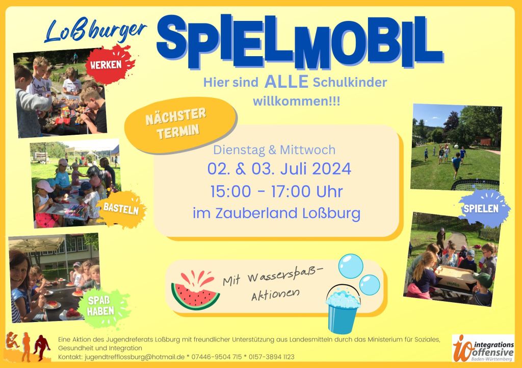 Update 10.07.24: Nach einem rekordverdächtig-heißen Nachmittag gestern mit vielen lustigen Wasserspielen muss das Spielmobil im Zauberland heute leider aufgrund des Wetters ausfallen!