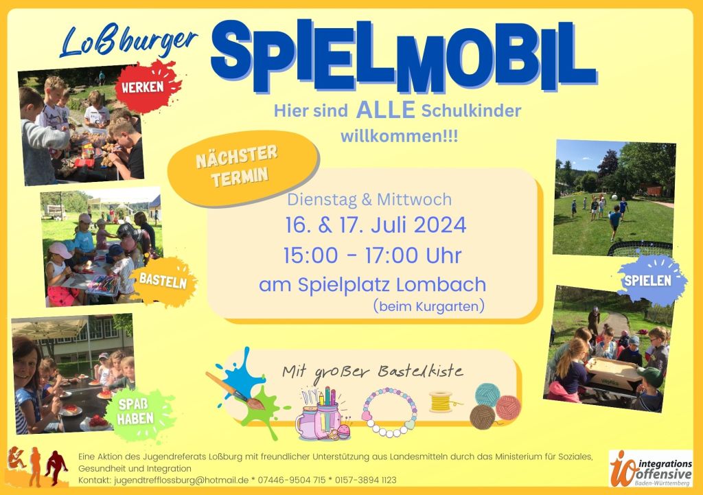 In Lombach kommt das Spielmobil wieder zum Spielplatz. Dort haben wir jede Menge Platz für unser großes Spielangebot. Mit im Gepäck haben wir eine große Bastelkiste, sodass Ihr auch nach Lust und Laune kreativ werden könnt. Kommt vorbei – wir freuen uns auf Euch!