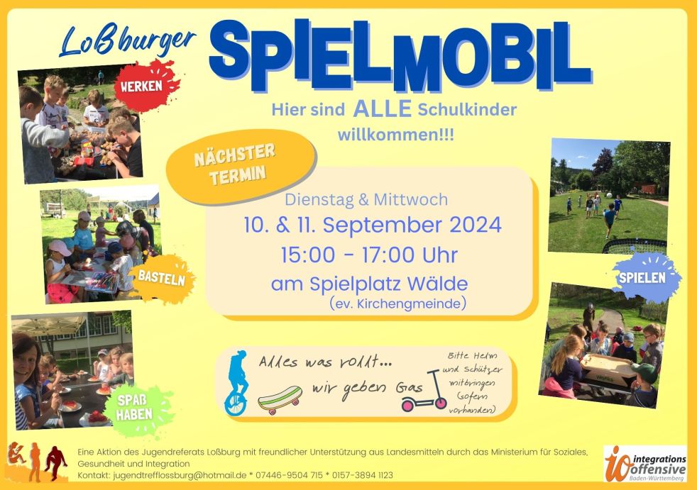 Update 10.09.24: Das Spielmobil kann aufgrund der vielen Schauern heute und morgen nicht nach Wälde kommen 😦 Nach der Sommerpause wollen wir mit dem Spielmobil in Wälde richtig Gas geben. Wir bringen neben Spielen und Bastelsachen viele Fahrgeräte wie Einrad, Skateboards, Roller und Pedalos mit. Auf dem Sportfeld neben dem Spielplatz ist reichlich Platz, um… Weiterlesen 10. & 11. September in Wälde